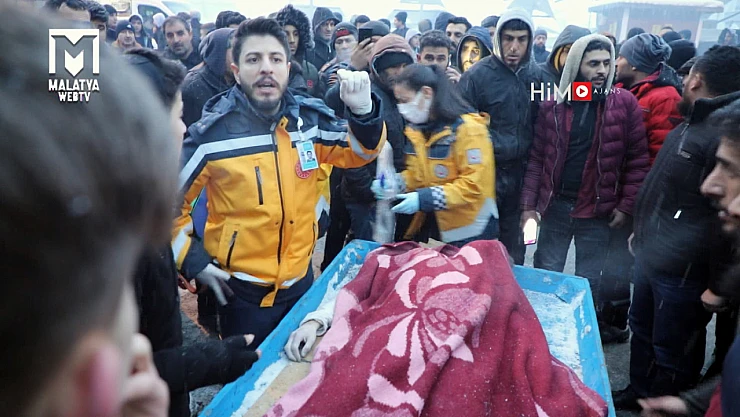 Asrın Felaketi Malatya Depreminden enkaz altında çıkartılan Suriye Uyruklu vatandaş, Ambulansa zorlukla götürüldü. Ambulans, enkaz alanına girmediği için, depremzede, el arabası ile sağlık görevlilerine ulaştırıldı. Sağlık görevlilerin yaptığı ilk müdahalede Suriye uyruklu vatandaşın hayatını kaybettiği öğrenildi.